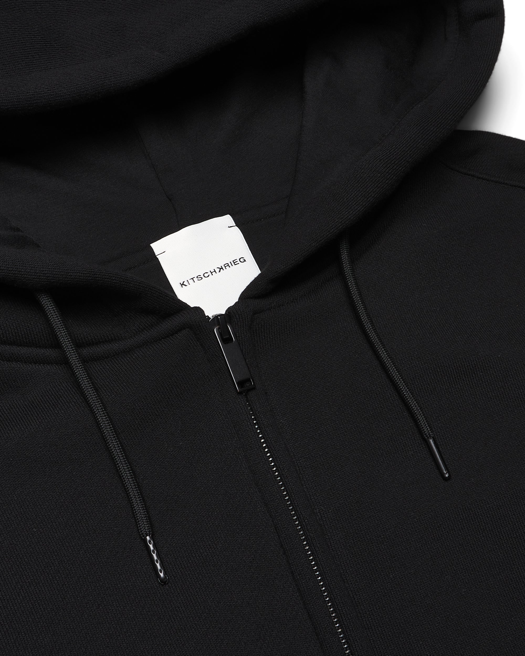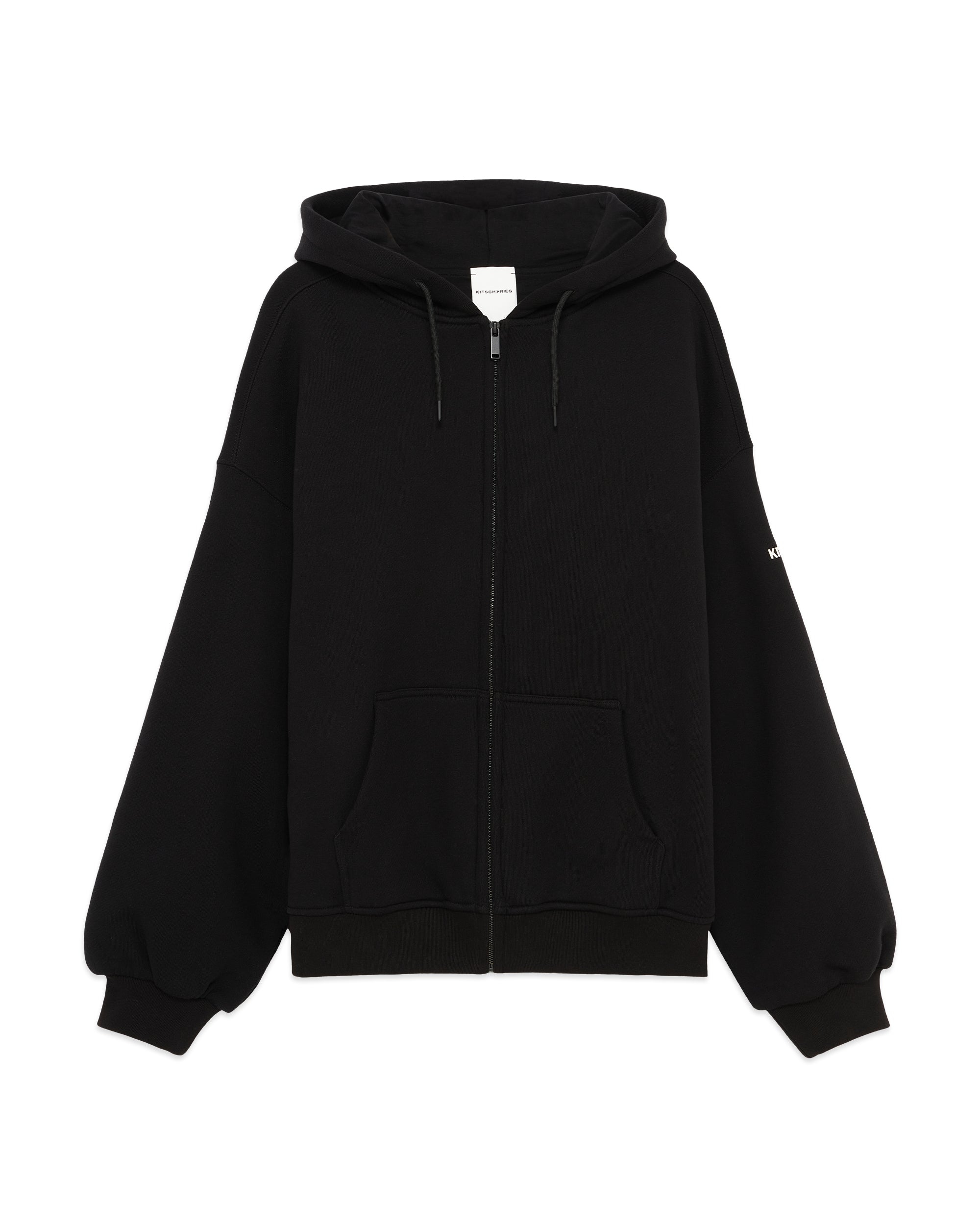 100% Cotton. 525GM. Lined with single jersey. Inside pocket. Color: Black. Drop shoulders. Screen print on right sleeve. Woven patch on the lower right side of the back. Rip knit trim. Front pouch. Two-ply-hood. Machine Wash.