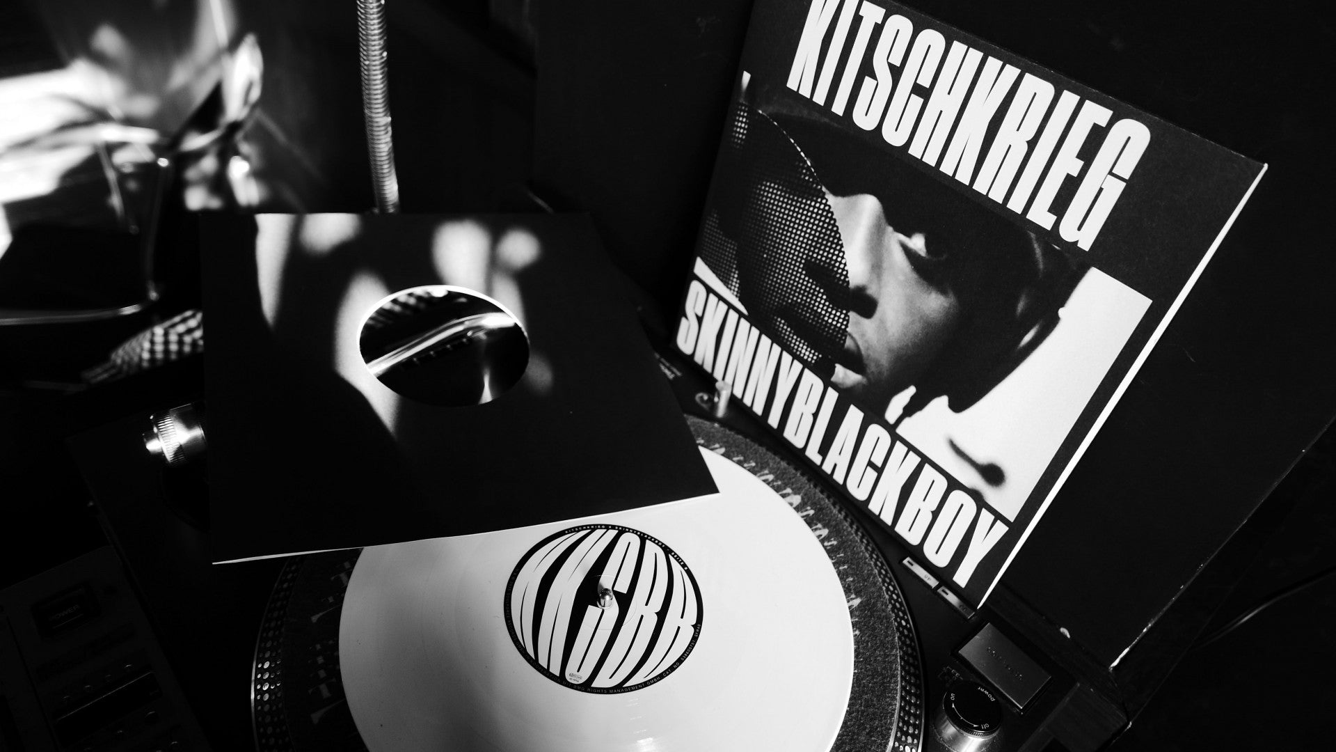 The SKINNYBLACKBOY x KITSCHKRIEG EP as a 10" record on white vinyl.