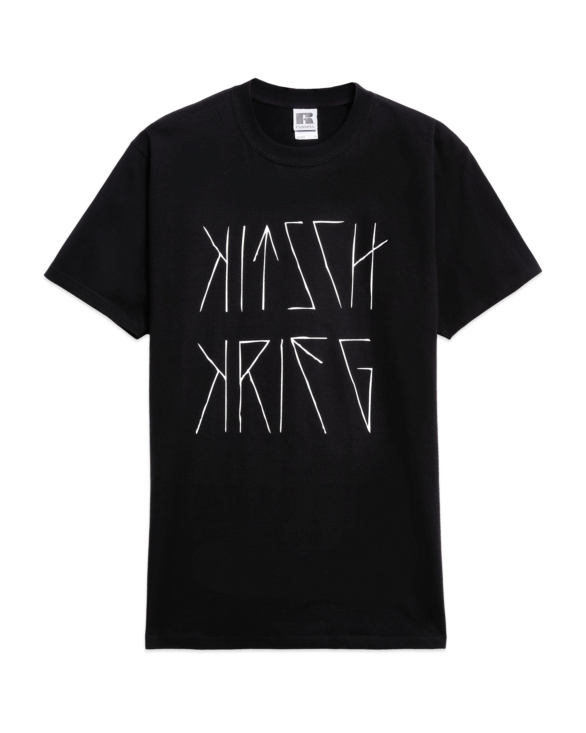 100 % Cotton. 180 gsm fabric. Russell T-Shirt. Color: Black. Screen Print. Machine wash.